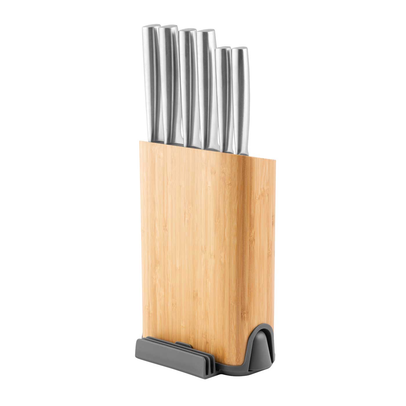 Wil je je messencollectie uitbreiden met een compleet messenblok inclusief hoogwaardige roestvrijstalen messen, bijpassende snijplanken en zelfs een ingebouwde messenslijper? Deze veelzijdige messenset heeft het allemaal: een schilmesje, een universeelmes, een vleesmes, broodmes, koksmes, santokumes, 3 snijplanken en een geïntegreerde messenslijper. Met een sterke magneet naast het houten blok, kan een schaar of ander magnetisch keukengereedschap ook worden opgeborgen. Hoe handig is dat!