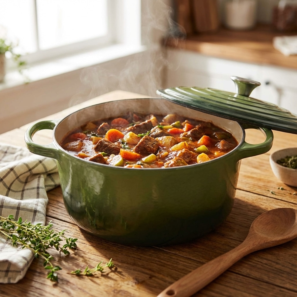 Het zware gietijzer zorgt ervoor dat de warmte mooi gelijkmatig verdeeld wordt. En eenmaal heet? Dan blijft hij dat ook lekker lang. Ideaal dus voor gerechten die rustig moeten sudderen of langzaam garen. Denk aan stoofvlees, curry’s of die heerlijke eenpansgerechten waar je uren van geniet.