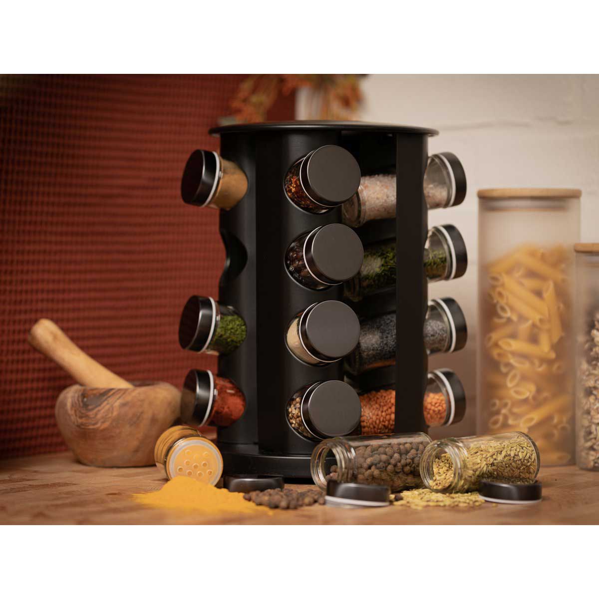 Zwart Kruidenrek / Kruidencarrousel – Inclusief 16 Kruidenpotjes – Blackwell