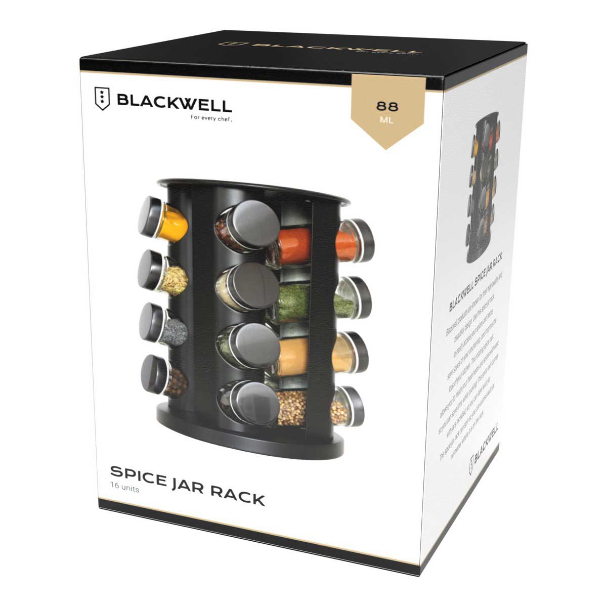 Wil je meer ruimte in de keuken creëeren en de keuken organiseren? Dan is de Blackwell Kruidenrek Zwart 16-Delig ideaal voor jou. Gebruik dit kruidenrek om eenvoudig je specerijen en kruiden in op te bergen, dit ziet er niet alleen stijlvol uit in jouw keuken, maar is ook ruimte besparend. Het Blackwell Kruidenrek Zwart 16-Delig biedt ruimte voor 16 verschillende kruiden. Je kan alle kruiden en specerijen gemakkelijk pakken doordat het kruidenrek draaibaar is. Het kruidenrek wordt geleverd inclusief kruidenpotjes.